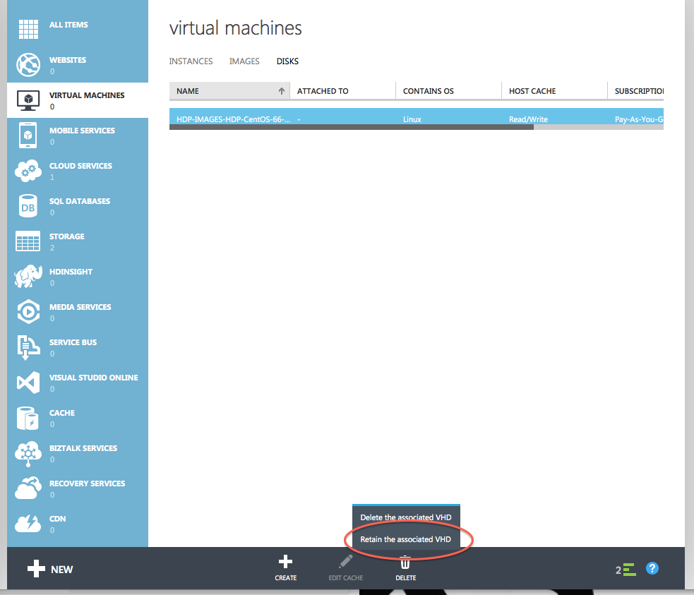 But now the disk is still associated to your virtual hard drive, which prohibits us from creating a new image based on the VHD. So we need to also delete the disk but this time make sure we don’t delete the linked drive.