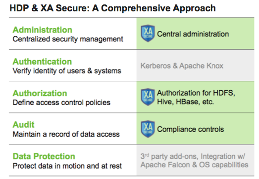 Apache Argus, the Apache open source project, with it’s comprehensive security offering for today’s Hadoop installations is likely to become an important cornerstone of modern enterprise BigData architectures. It’s by today already quite sophisticate compared to other product offerings.